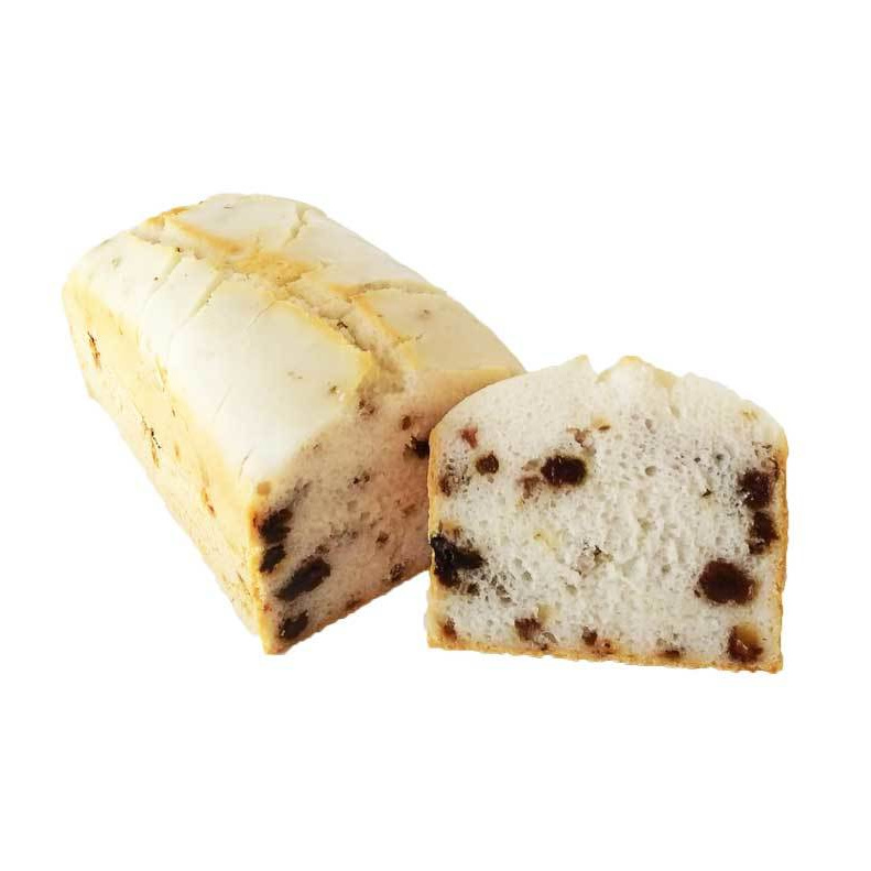 グルテンフリーであきたこまち米粉100%のプレーンパンにたっぷりの有機レーズンが入っています。